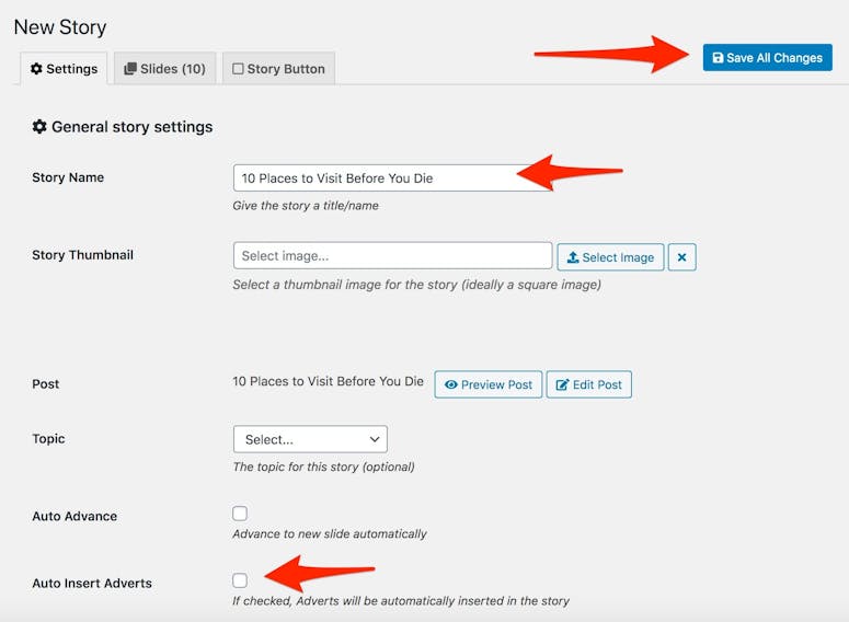 No need to manually add story buttons on your posts or pages, all this happens automatically when you create a new story from your post.